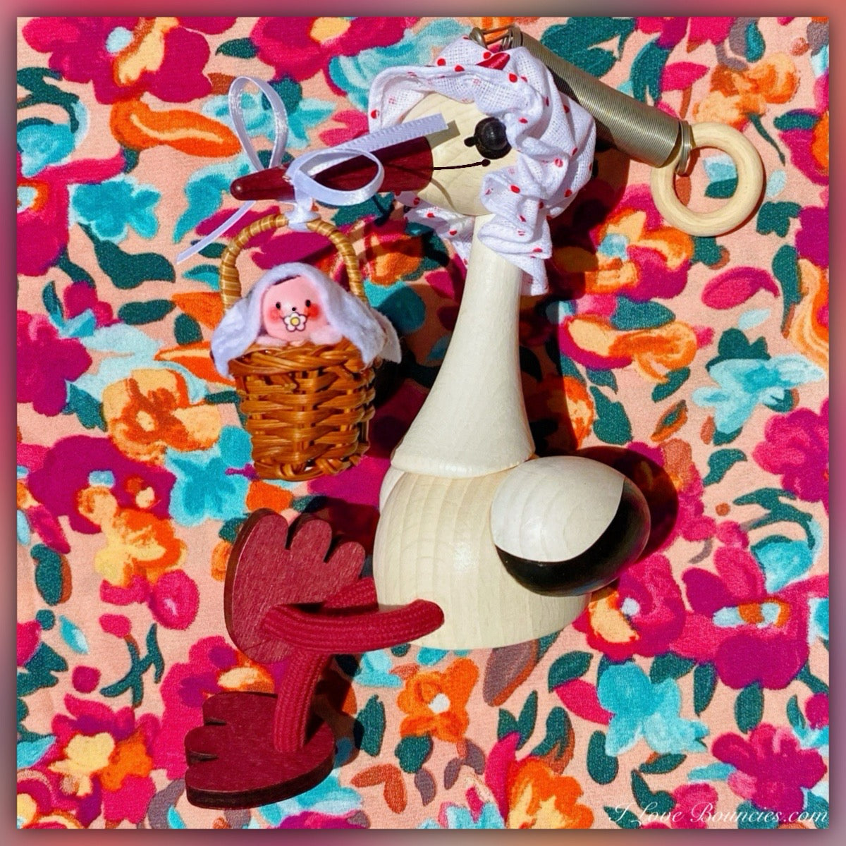 Celebrate life with the Stork Bouncie, the wooden gift bearer on a spring that carries a baby in its basket! Handmade in Germany, it's the perfect gift for new mothers, baby showers, or nursery rooms. Give the gift of cuteness and joy with Stork!